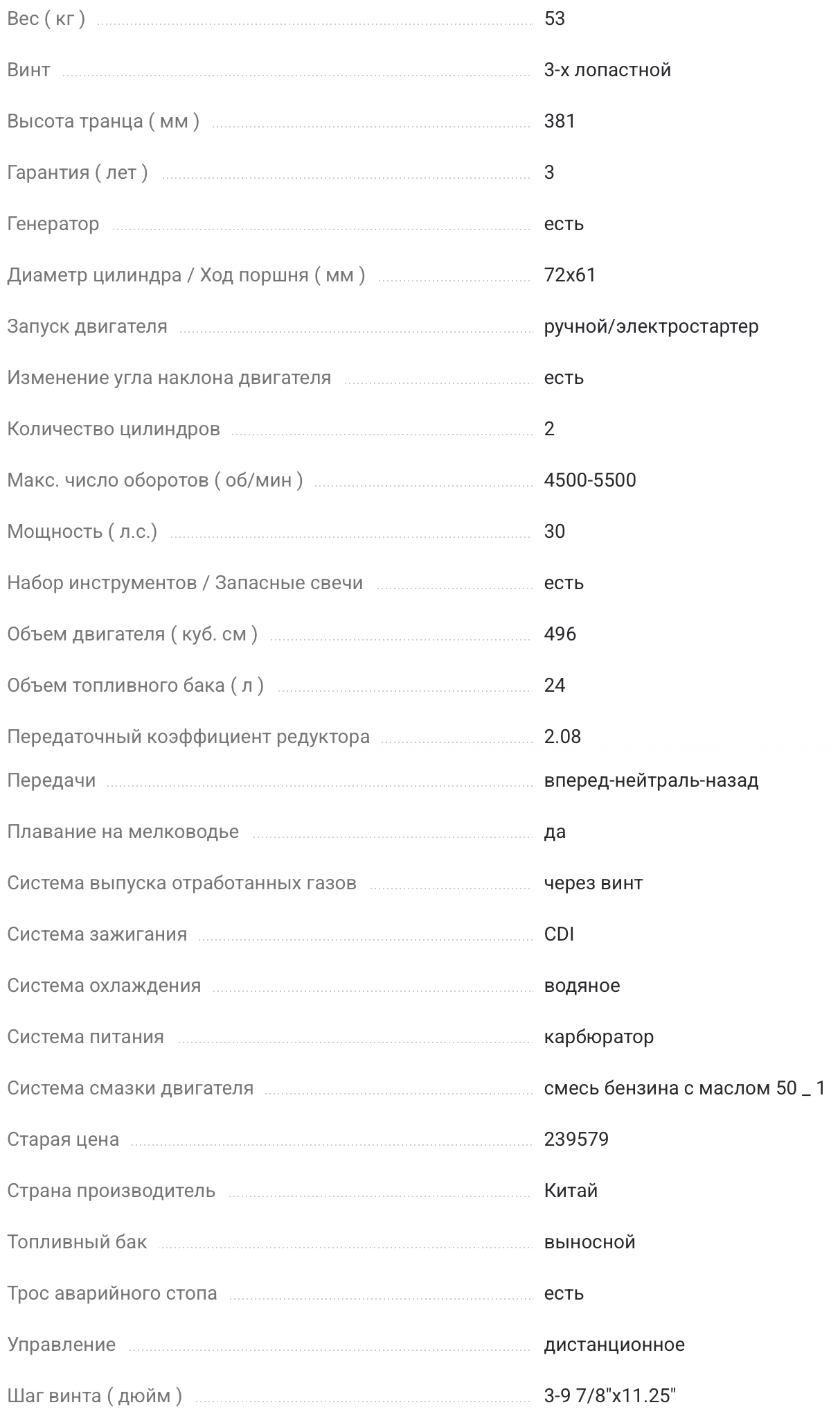 Подвесной мотор TOYAMA T30AFWS развивает мощность 30 л.с. при объеме 496 см3.